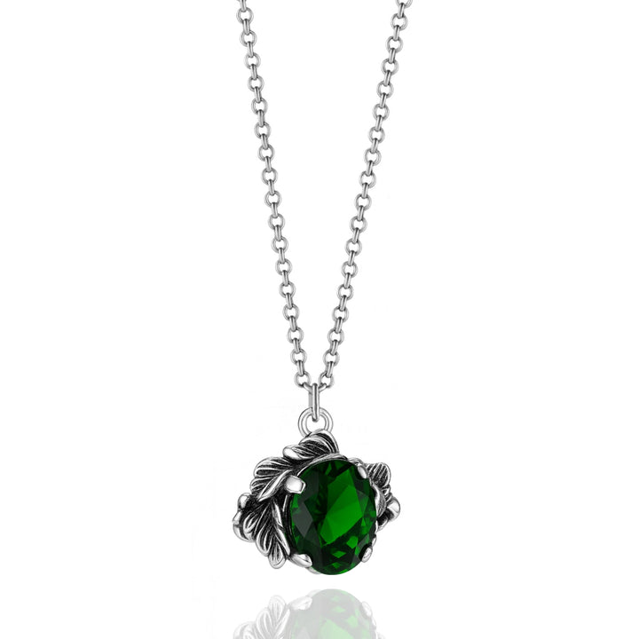 This Coleus Ovalis Necklace by Unaloe is an unparalleled masterpiece that beautifully embodies the vitality of life. The intricate pendant is adorned with delicate leaves that "dance" around a central oval-cut pea green cubic zirconia, a stone that symbolizes life, vitality, and respect for nature. The necklace features a versatile double chain design, with both a rollo and a giotto chain, making it perfect for layering. This piece adds a touch of sophistication to any look and can be beautifully complemented by other pieces from the Unaloe line.