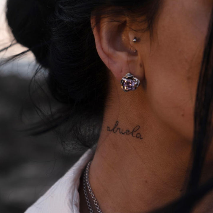 These handcrafted stud earrings are made from solid 925 sterling silver with an artisanal antiquing technique that blackens the silver to add a unique touch. Each earring is adorned with a central pink cubic zirconia stone. The pieces are Made in Italy and are nickel-free.