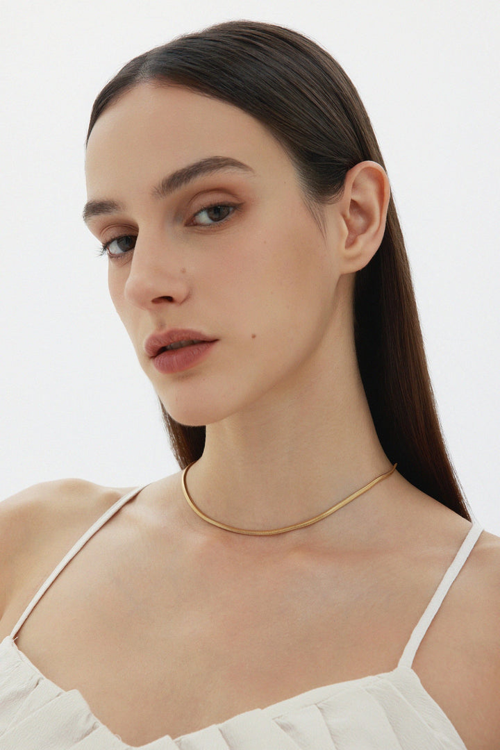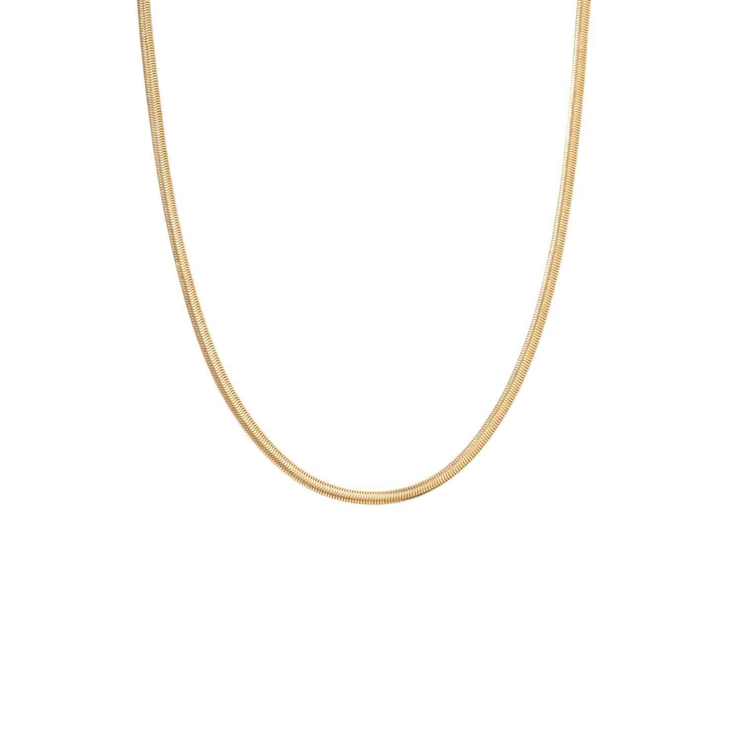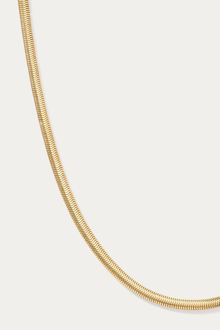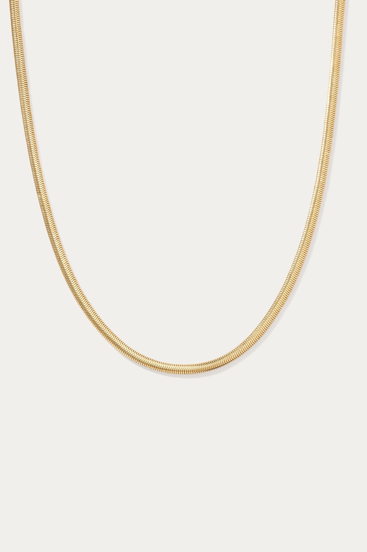 This Estelle Herringbone Chain Necklace by Vanchi is a luxurious and effortlessly timeless wardrobe staple. The 3 mm chain is the perfect weight and thickness, making it ideal for attaching pendants, serving as a base for your necklace stack, or simply wearing alone.
