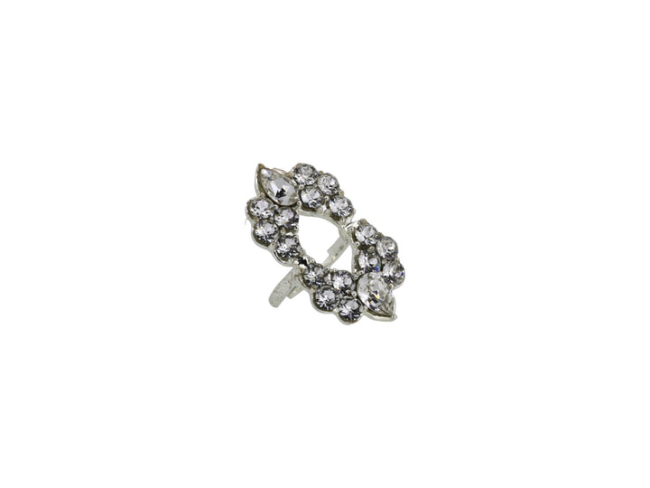 This adjustable ring is crafted from nickel-free brass with sterling silver plating. It features premium Austrian crystals, including a pear-shaped crystal.