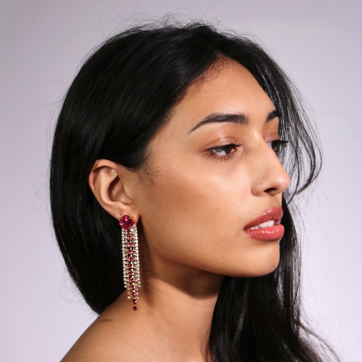 These dangle earrings are made with 23k gold-plated, nickel-free brass and surgical steel posts. They are adorned with premium Austrian crystals.