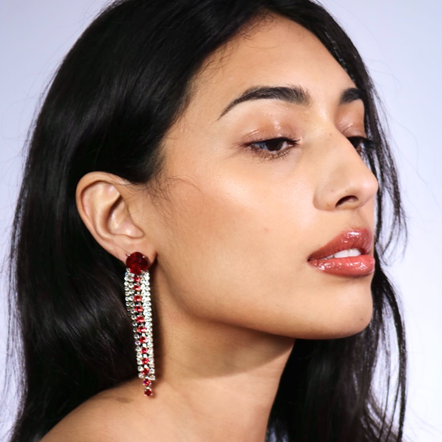 The Red Shooting Stars In Platinum by Vickisarge are handcrafted dangle earrings that provide "the iconic illumination." They feature dazzling cushion-cut premium Austrian crystals in a vibrant red, with shimmering tails, all set in platinum-plated, nickel-free brass. They are designed to make you "dare to dazzle."