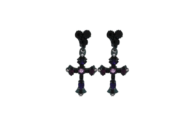 The Purple Cross Earrings In Oxidised Silver