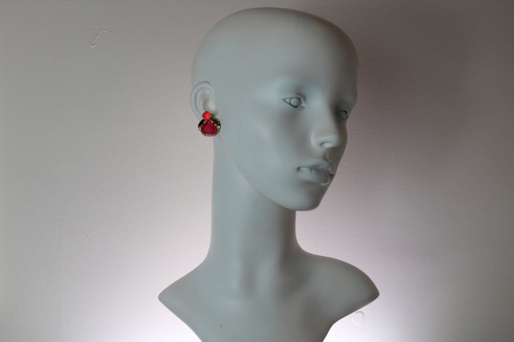 Old Raspberry Glitter Bee Earrings - Pierced