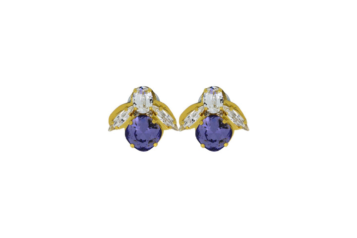 These Baby Purple Bee Earrings In Gold by Vickisarge are an iconic and essential staple. Dazzling, demure, and dangerous, these earrings are quintessentially VICKISARGE. Featuring brilliant cushion-cut crystals in a rich purple hue and luxurious 23k gold plating, they offer a subtle yet powerful display. Handcrafted in London, these earrings are a symbol of fearless style, daring you to dazzle with every wear.