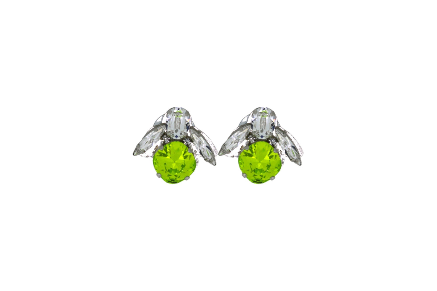 These Baby Green Bee Earrings In Platinum by Vickisarge are a dazzling and demure staple. Featuring brilliant cushion-cut crystals in a rich green hue and luxurious platinum plating, these earrings offer a subtle yet powerful display. Handcrafted in London, they are quintessentially VICKISARGE—a symbol of fearless style that dares you to dazzle with every wear.