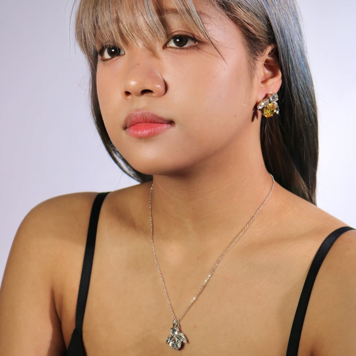 These Baby Yellow Bee Earrings In Platinum by Vickisarge are an iconic and essential staple. Featuring dazzling cushion-cut crystals in a vibrant yellow hue and luxurious platinum plating, these earrings offer a subtle yet powerful display. Handcrafted in London, they are quintessentially VICKISARGE—a symbol of fearless style that dares you to dazzle with every wear.