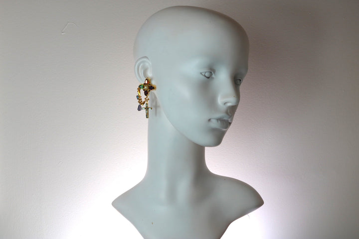 These clip-on earrings are a limited-edition piece (4 made) and are handcrafted from 23-karat gold-plated, nickel-free brass and are set with premium Austrian crystals and semi-precious stones.