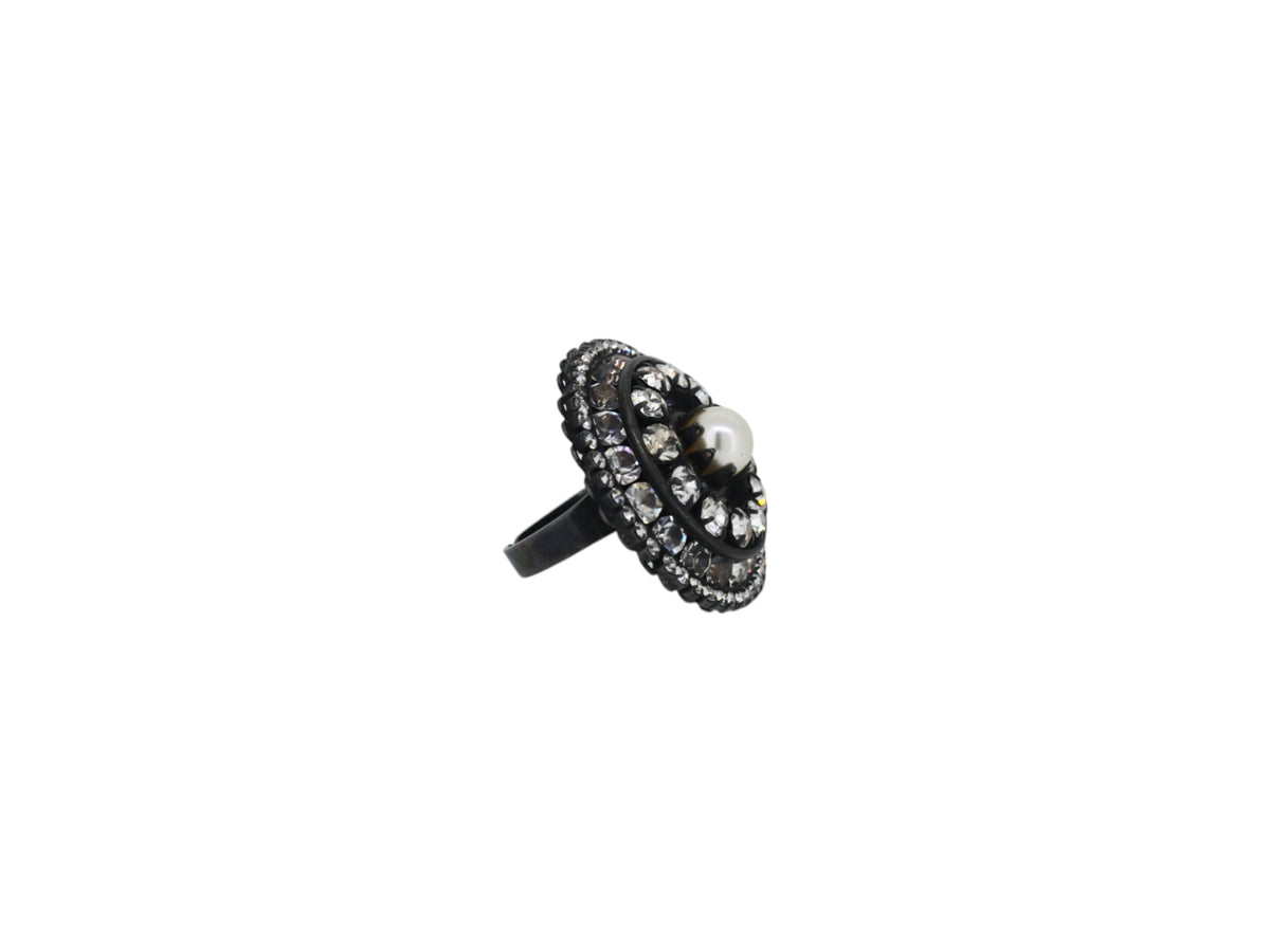 This ring is handcrafted from oxidized sterling silver-plated nickel-free brass and features premium Austrian crystals and crystal pearls. It comes with a certificate of authenticity.