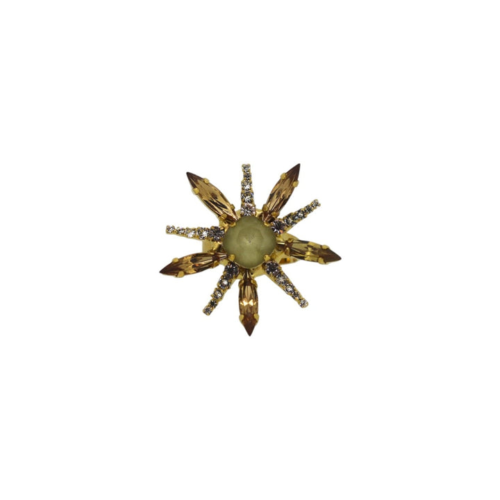 The Champagne Star Ring is an exquisite ring that captures a festive and elegant spirit. It is made from 23k gold-plated nickel-free brass and features a shimmering star motif meticulously crafted from champagne-toned Premium Austrian Crystals. This piece is a timeless tribute to joy and glamour.