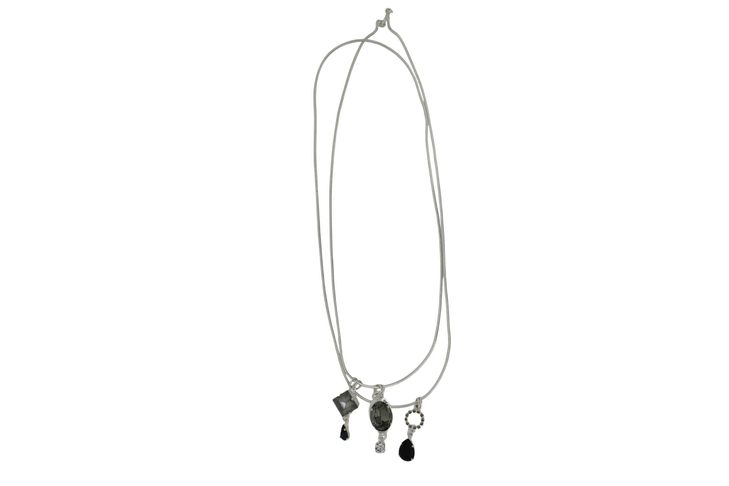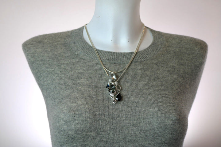 This necklace is handmade. It is made from sterling silver-plated, nickel-free brass and features Premium Austrian crystals. It is from a run size of 1.