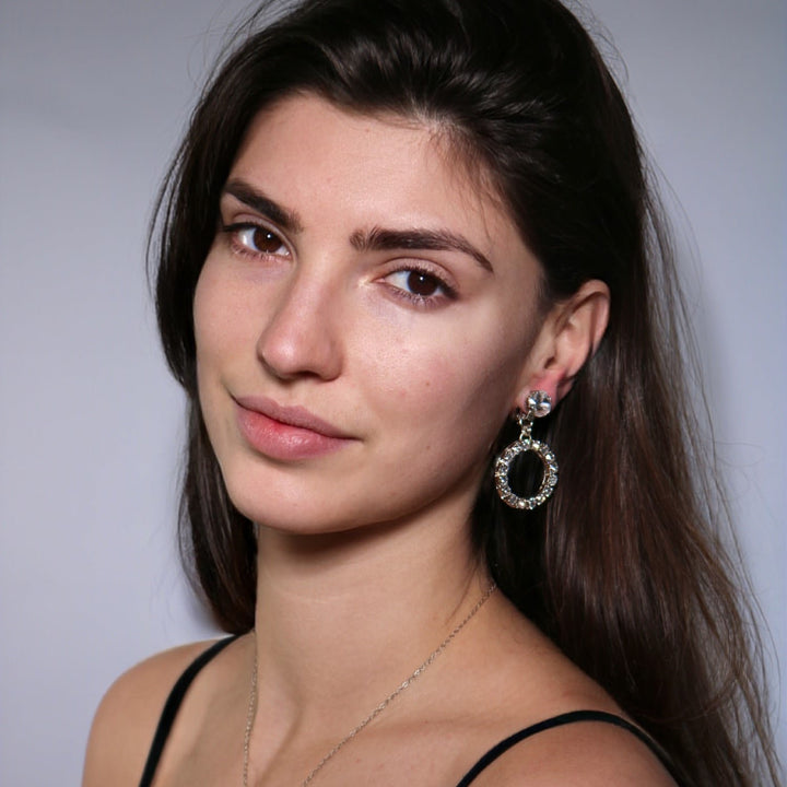 These earrings are crafted from Platinum plated Nickel-free Brass with Surgical Steel posts and are set with Premium Austrian crystals.