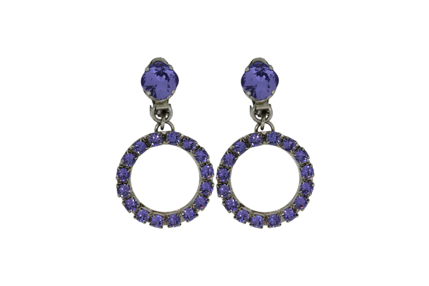 The Small Purple Hoop Earrings by Vickisarge are a "scene-stealing essential" inspired by the styles of Studio 54. Set with 16 premium Austrian crystals in a beautiful purple hue, these hoops are handcrafted with luxurious Platinum plating. Despite their crystals, these earrings are lightweight and comfortable.
