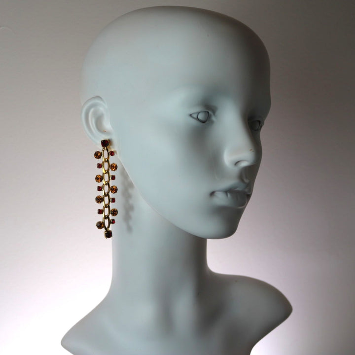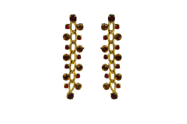 The Evergold Vines Earrings by Vickisarge are a radiant and elegant accessory. These earrings blend sophistication with the warm essence of autumn, featuring 23-karat gold-plated chain links adorned with autumnal-toned Premium Austrian crystals. Each crystal catches the light with every movement, creating a subtle yet sophisticated glow.