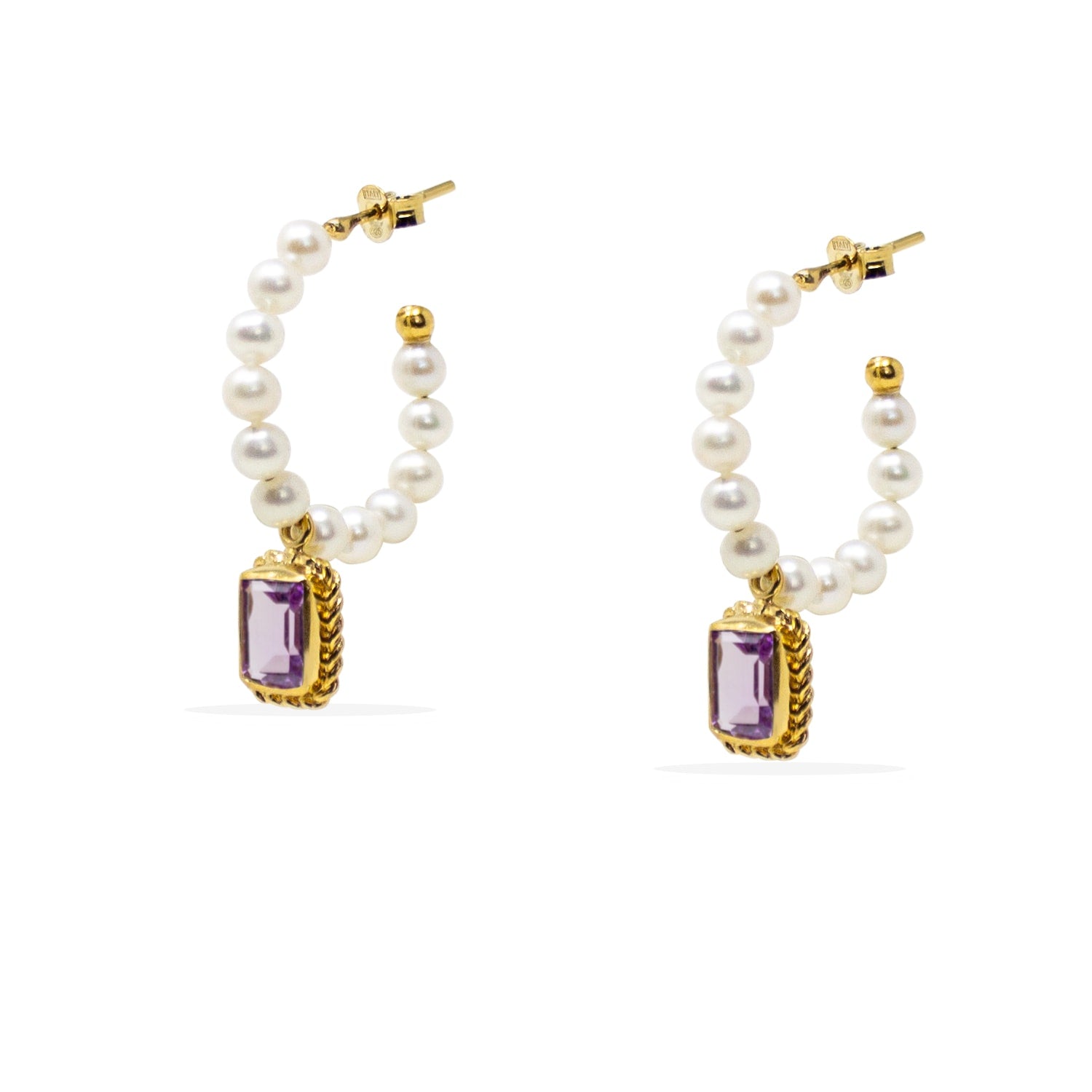 Luccichio Amethyst And Pearl Hoop Earrings