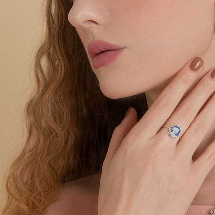 Sterling Silver Sky Blue Mini Cameo Ring