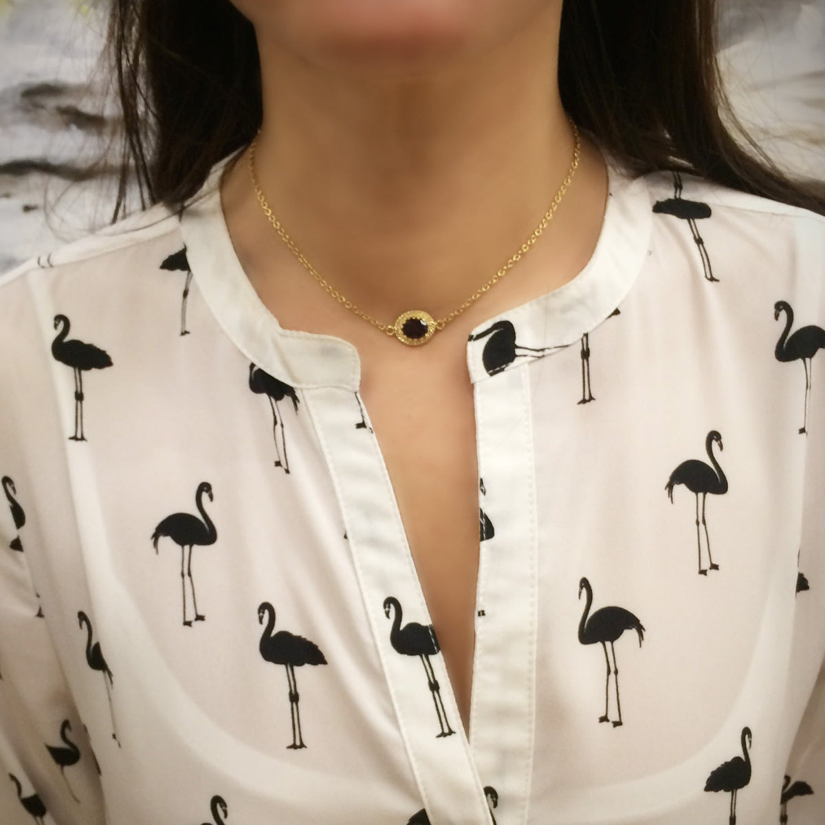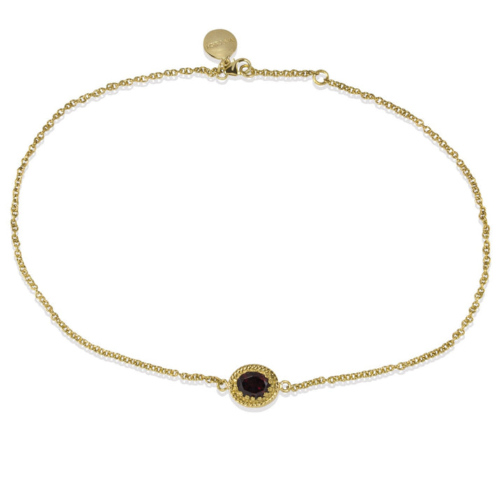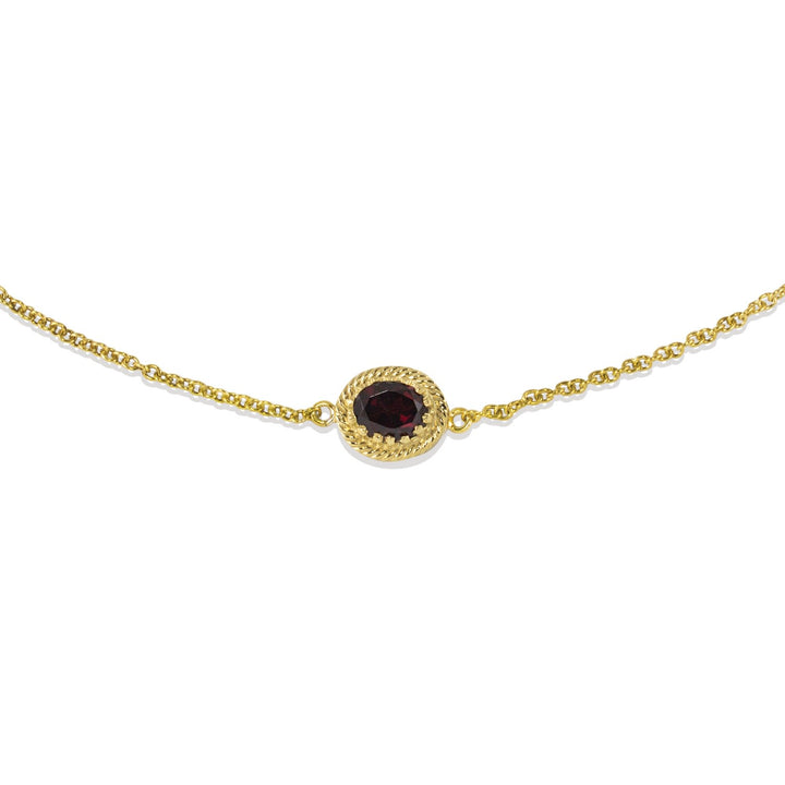 This choker is handcrafted from gold vermeil and is centered with a genuine garnet cabochon. It is made in Italy.