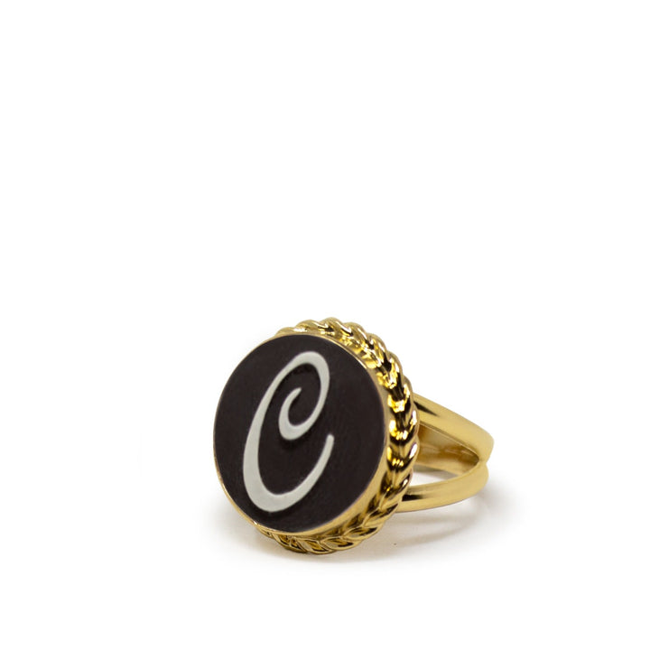This Gold Vermeil Black Cameo Ring Initial C by Vintouch Italy is a masterfully handcrafted and meaningful piece. This signet ring features a black cameo with the initial "C," making it a sweet token or anniversary gift. Made from 24-karat gold vermeil over sterling silver, it combines a classic design with a personal touch.
