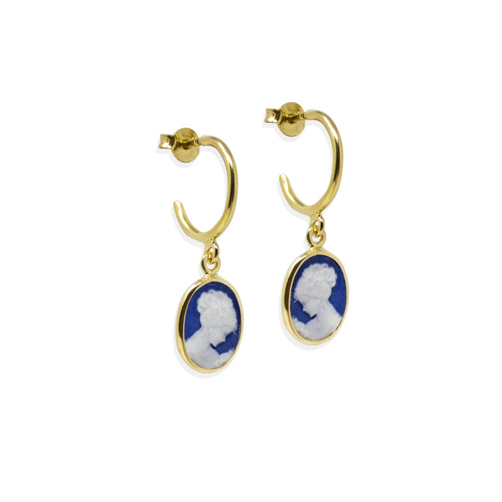 Gold-Plated Blue Mini Cameo Hoop Earrings