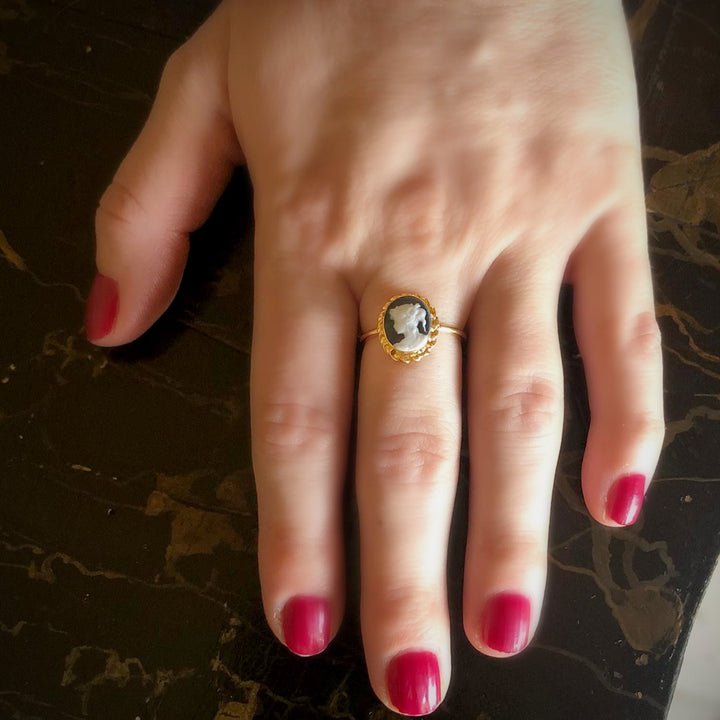 Gold-Plated Black Mini Cameo Ring