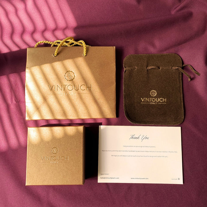Vintouch is an Italian jewelry brand celebrating the heritage of craftsmanship and design that defines Made in Italy. Based in Torre del Greco, Naples, the brand blends contemporary design with traditional techniques, particularly the bezel-set method, to create timeless pieces. Founded in 2015 by Alessandro Ricevuto, Vintouch uses ethically sourced materials and sustainable practices. Alessandro’s passion for art and his family’s goldsmithing tradition inspire each meticulously handmade creation, from classic pieces to iconic porcelain cameos, making Vintouch a symbol of enduring style and beauty.