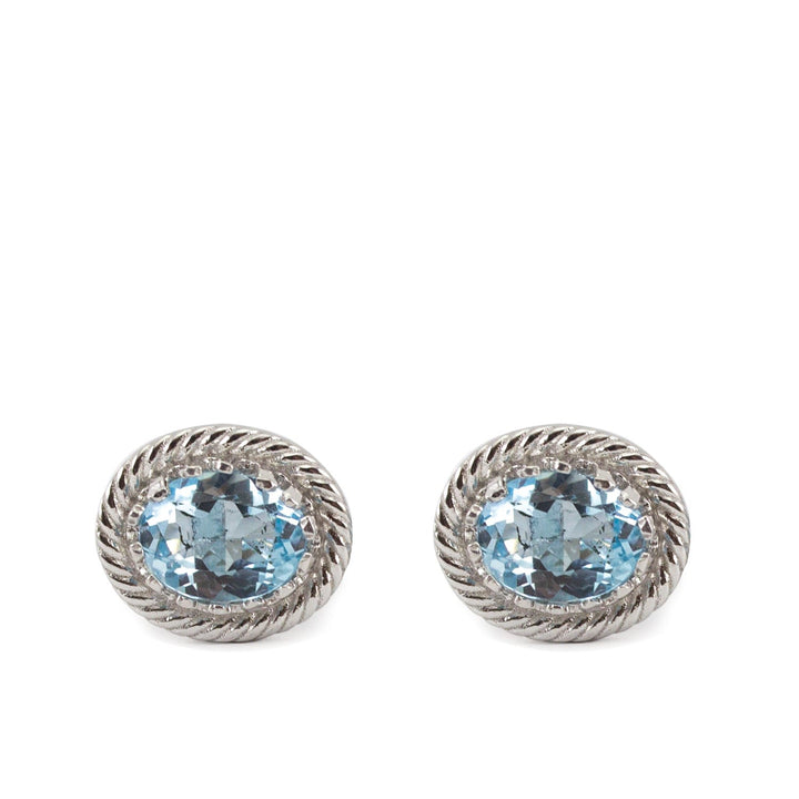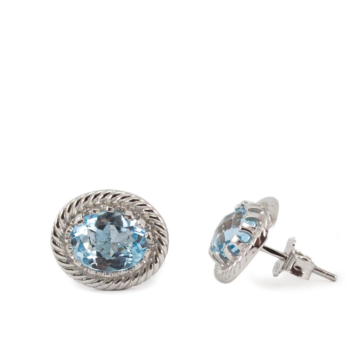 The Luccichio Sky Blue Topaz Stud Earrings by Vintouch Italy are an elegant accessory for everyday wear or evening styles. These stud earrings are handmade in Italy and are set with genuine sky blue topaz cabochons. Blue topaz is known for its soothing and healing properties. The earrings are nickel-free and come in signature Vintouch packaging.
