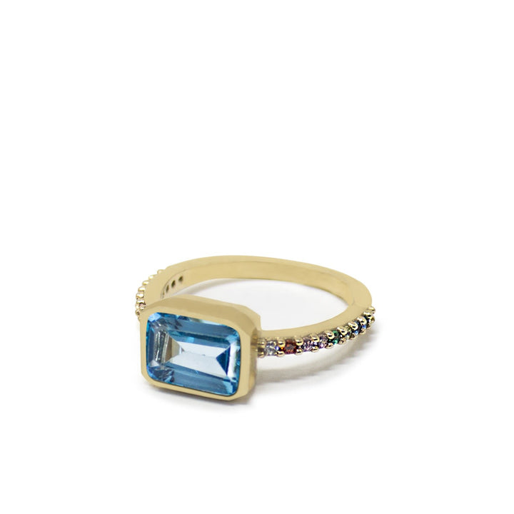 Luccichio Gold Vermeil Blue Topaz Rainbow Ring
