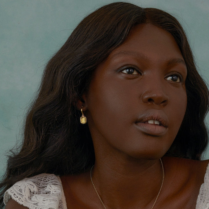 These handmade hoop earrings are made from 24-karat gold over sterling silver (2.5 microns) with a palladium plate. They are set with vibrant yellow citrine gemstones. The earrings are nickel-free and made in Italy.