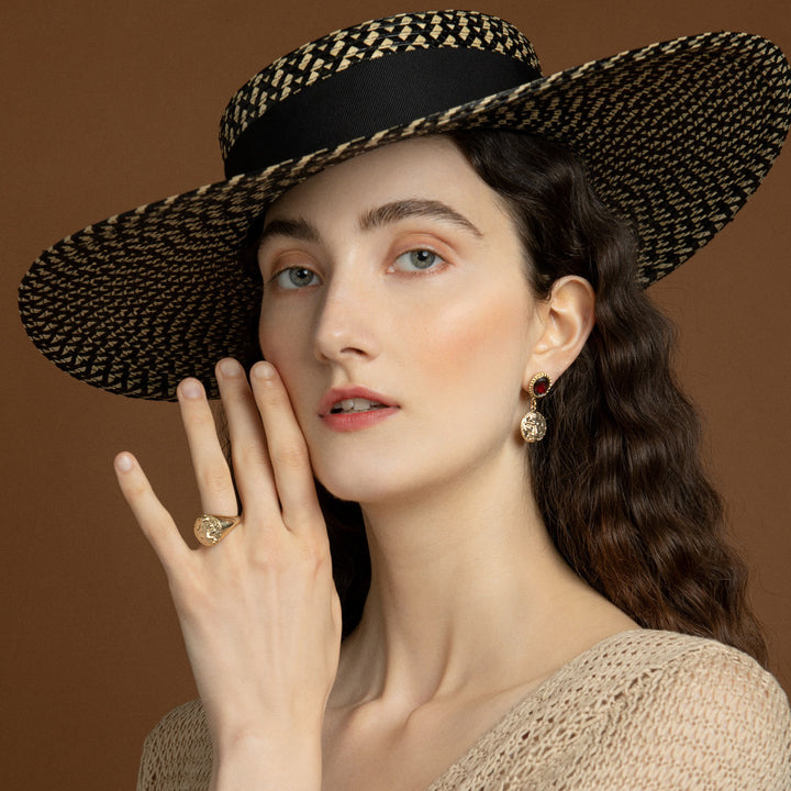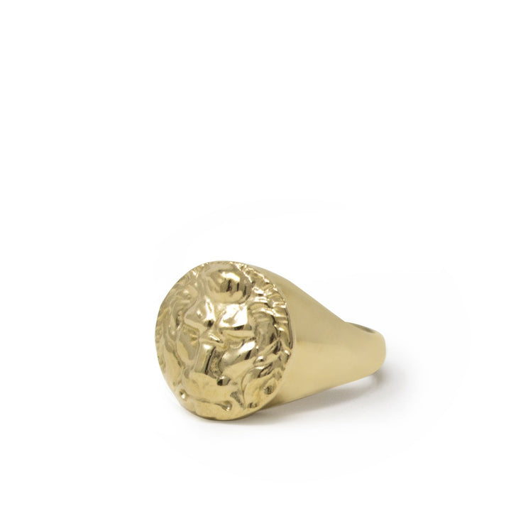 The Lion Gold-Plated Signet Ring by Vintouch Italy is a bold and meaningful ring. Handcrafted from 18-karat gold-plated silver, it is meant to remind the wearer to live courageously and free. The design is inspired by centuries-old Italian artistic heritage, making it a truly fanatic piece.