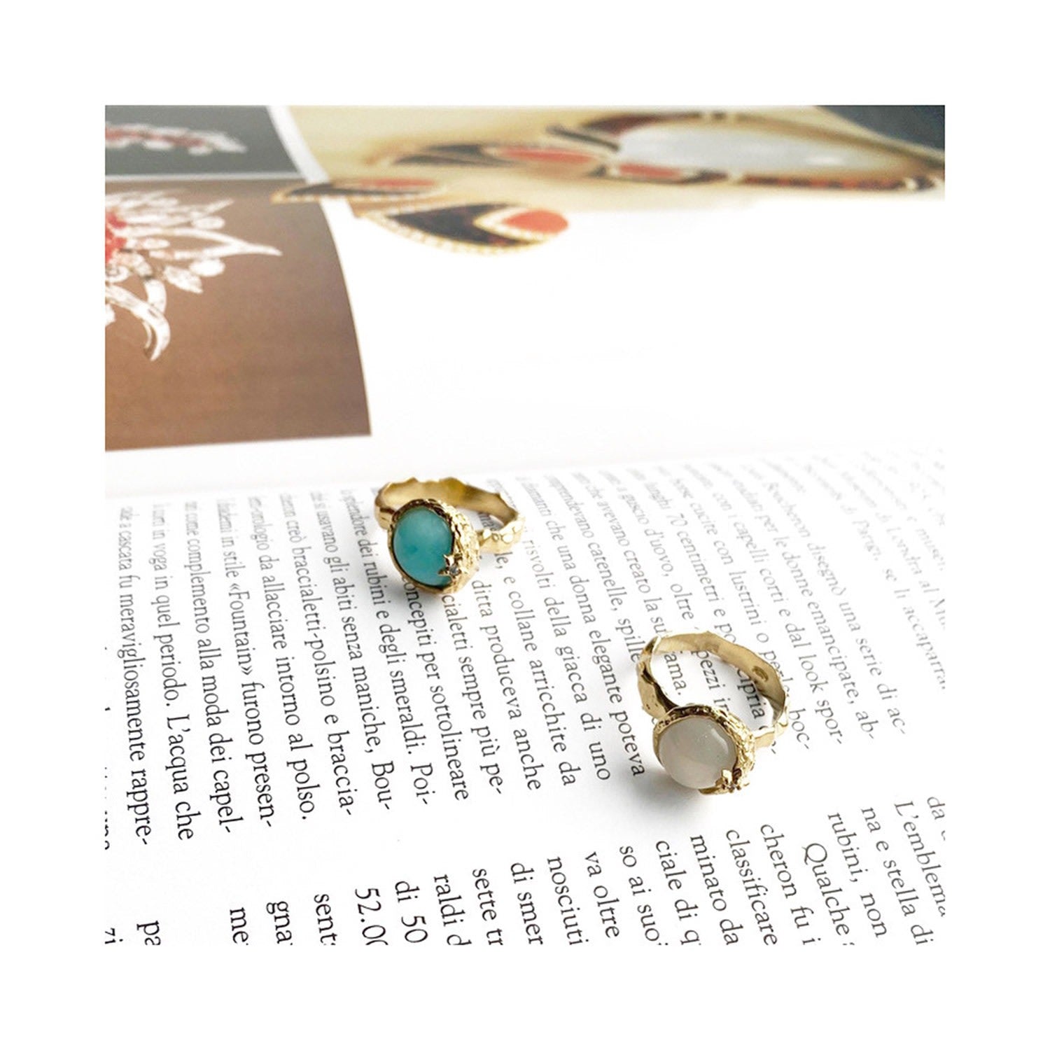This Ad Astra Gold-Plated Moonstone Ring by Vintouch Italy is a delicate and meaningful accessory. Handmade in Italy from 18-karat gold-plated silver, it features a moonstone with neutral shades that make it a perfect match for any outfit. The ring is further enriched with a crystal-encrusted, star-shaped motif, adding a celestial sparkle. This piece is a beautiful blend of unique materials and handcrafted techniques, designed to be both stylish and meaningful.