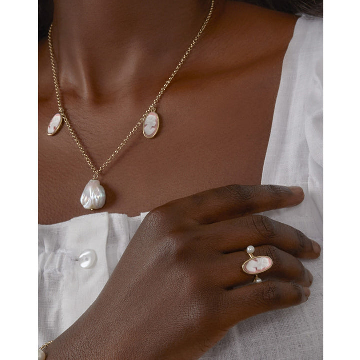 Medea Gold-Plated Pink Cameo And Pearl Necklace