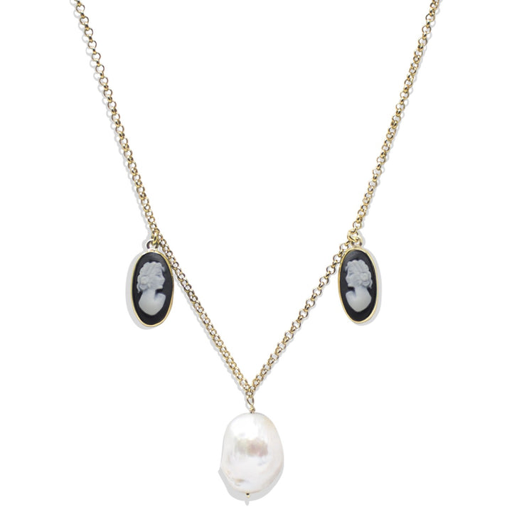 Medea Gold-Plated Black Cameo And Pearl Necklace