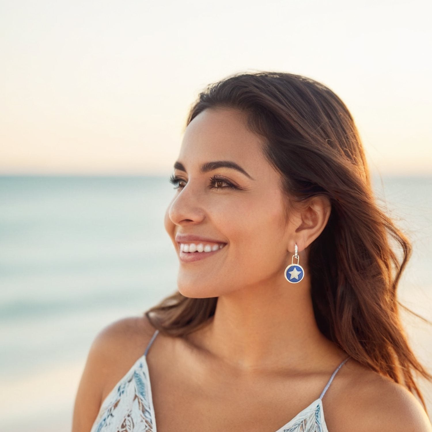 These Starfish Cameo Hoop Earrings by Vintouch Italy are a versatile and playful addition to your jewelry collection. Featuring a delicate, hand-carved porcelain cameo in the shape of a starfish, these earrings symbolize resilience and renewal. The removable cameo charm offers styling versatility, allowing you to wear just the elegant hoops for a minimalist look or add the charm for a touch of whimsy.