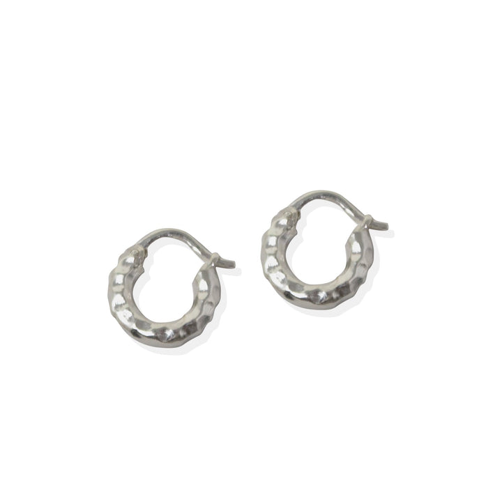 These huggie hoops are crafted from sterling silver with a rhodium layer to protect against tarnishing and have a gold vermeil finish. The piece features a hand-carved porcelain 'biscuit' cameo and is nickel-free and handmade in Italy.