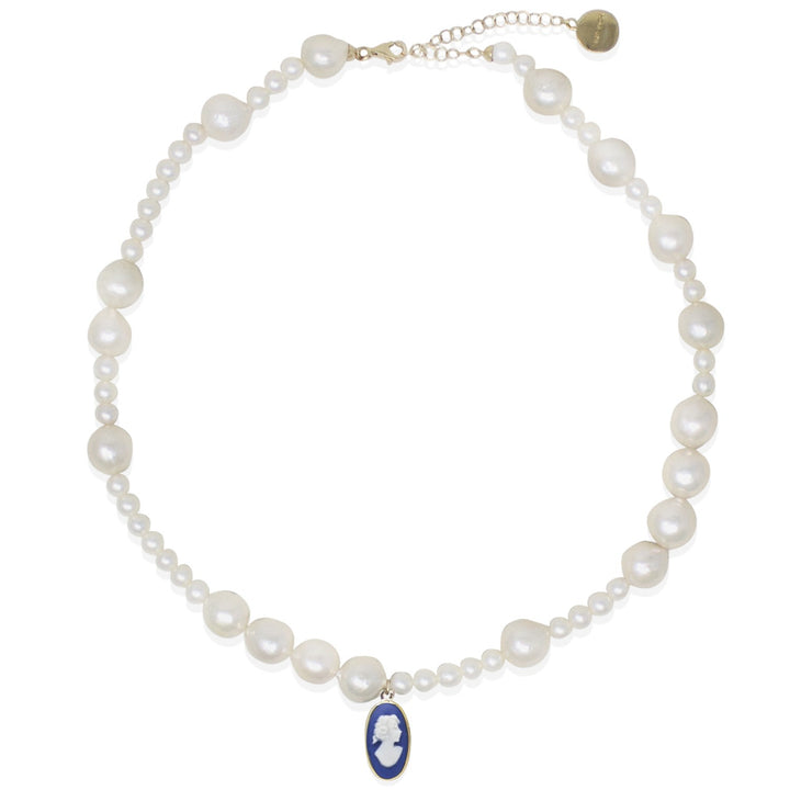 Boreas Mismatched Pearl And Blue Cameo Necklace