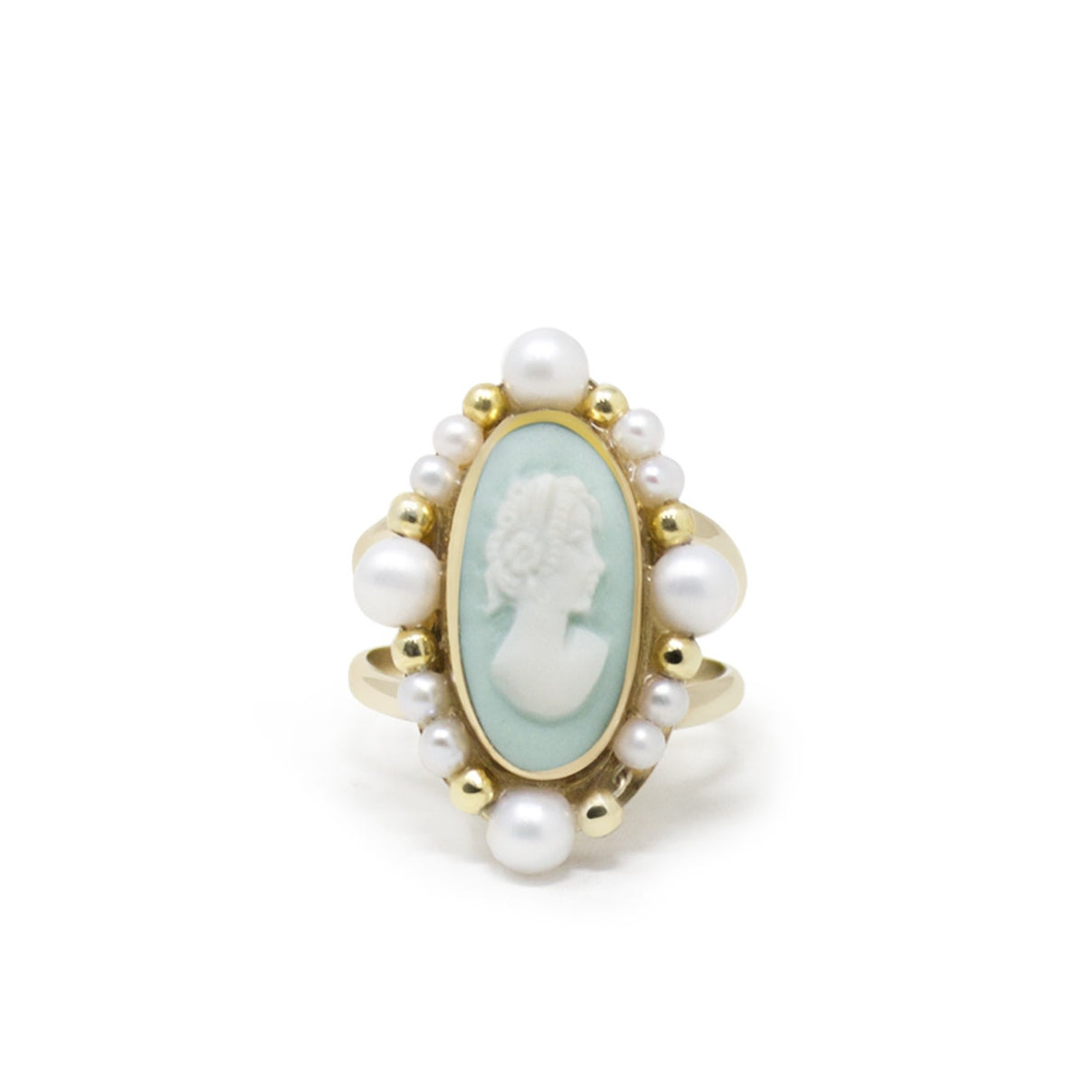 Ophelia Gold-Plated Green Cameo And Pearl Ring