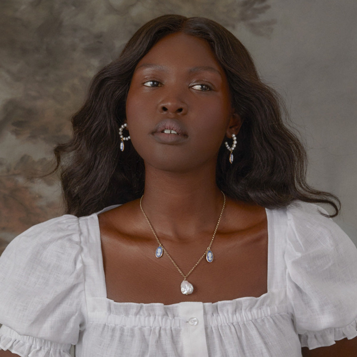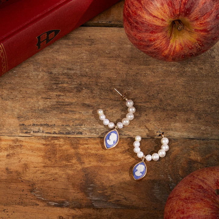 April Gold-Plated Pearl And Blue Cameo Hoop Earrings