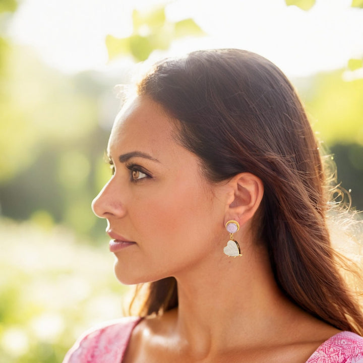These Happy Hearts Earrings by Vintouch Italy are a joyful celebration of love and elegance. Handcrafted by skilled artisans, these earrings feature delicate pearl hearts that sway gracefully, paired with soothing pink kunzite gemstones. The design exudes a peaceful and lively charm, perfect for adding a touch of calm and sophistication to any look. They are a beautiful and luxurious accessory that brings a bit of happiness with every movement.