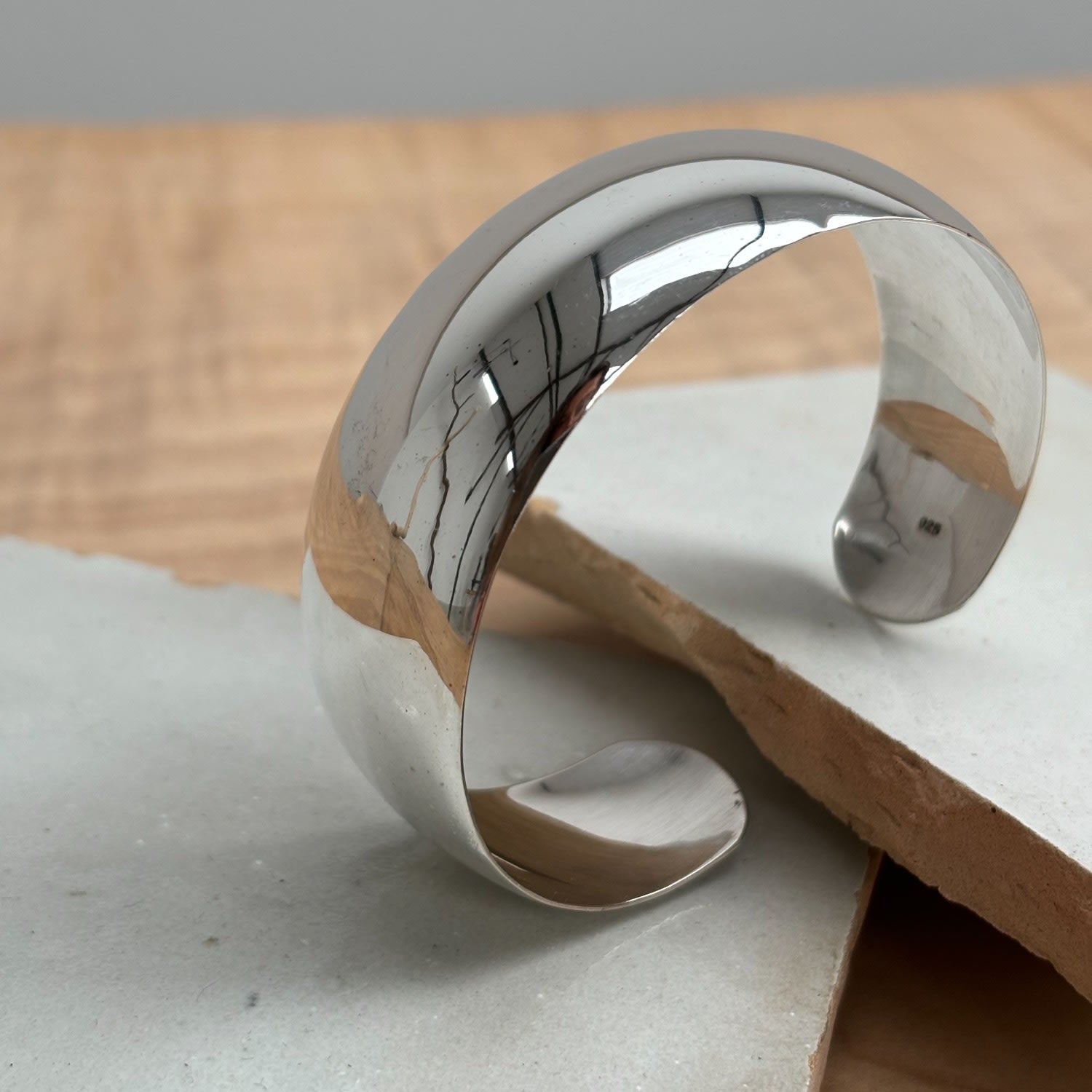 This cuff bracelet is crafted from 925 sterling silver.
