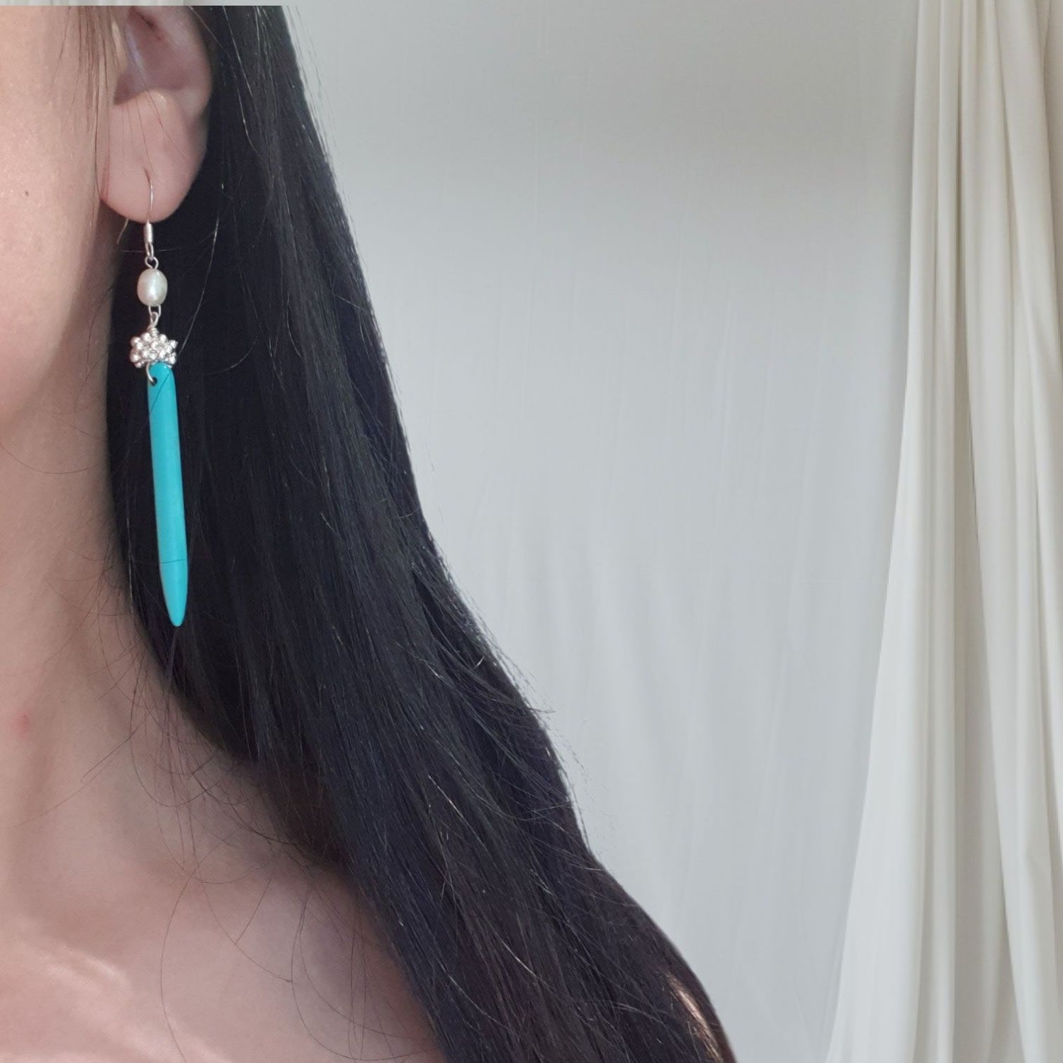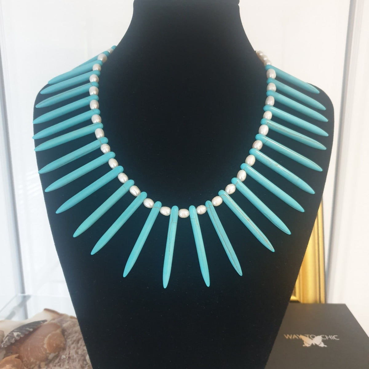 Turquoise Spike Necklace And Freshwater Pearl Earrings Set – Boho Statement Jewelry