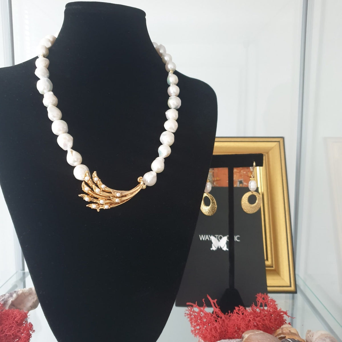 This Pearl Necklace with Antique Sea-Inspired Brooch by Way to Chic is a one-of-a-kind piece that tells a story of both timeless elegance and a love for the sea. Hand-strung with delicate baroque pearls, it has a soft, organic feel, while the repurposed antique brooch at its heart adds a sense of history and romantic depth. This necklace is for those who cherish a beauty that is both storied and uniquely their own, making it a perfect conversation starter and a true heirloom piece.