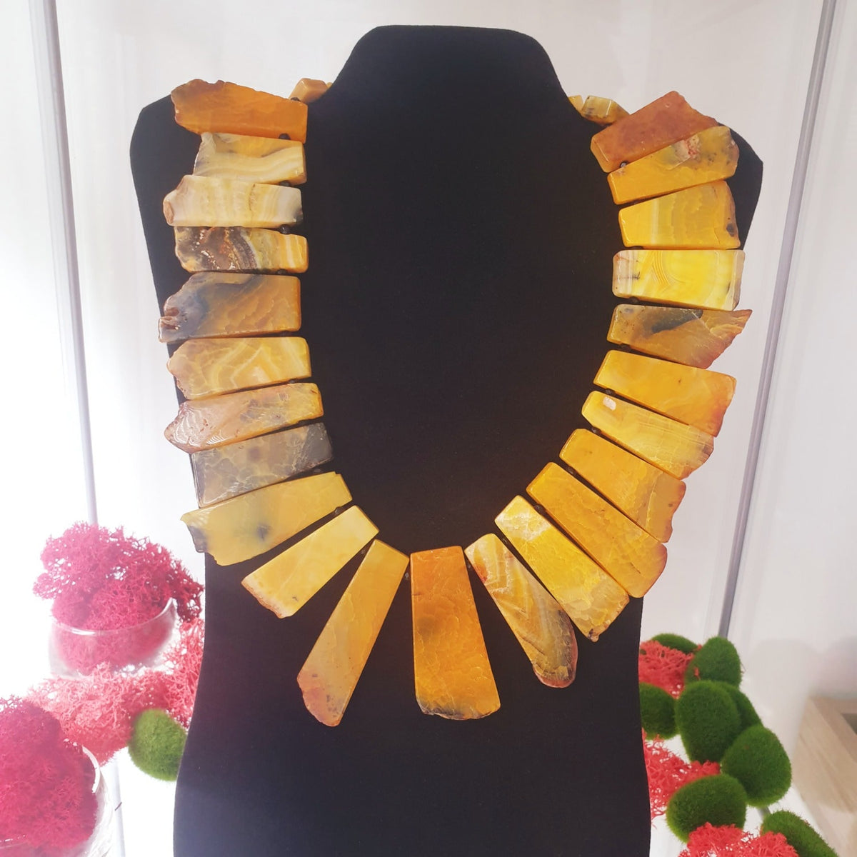 Golden Earth: Statement Necklace Of Yellow Agate & Black Malaysian Jade