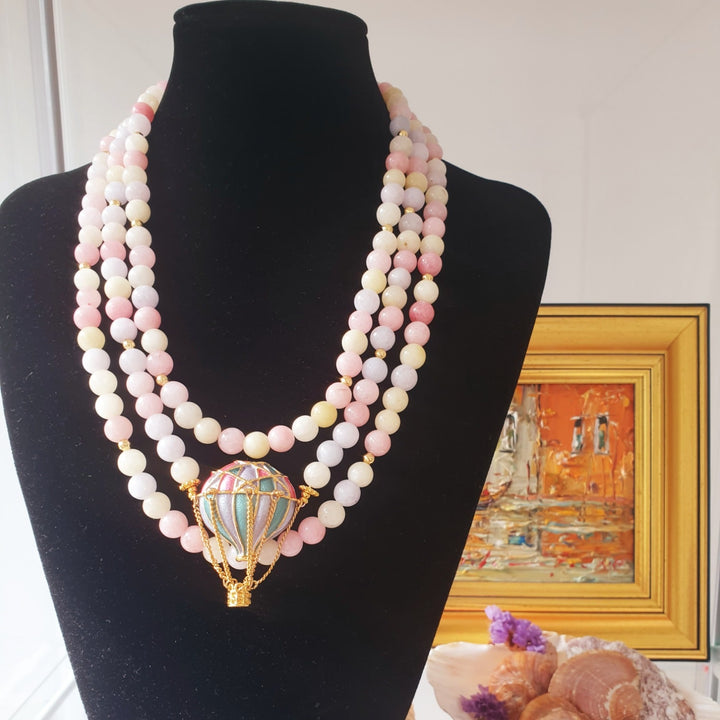 Morganite Beaded Necklace With Hot Air Balloon Brooch