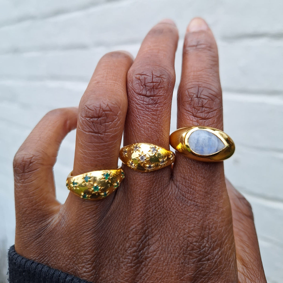 Milk Drop Rainbow Moonstone Gold Vermeil Gemstone Ring