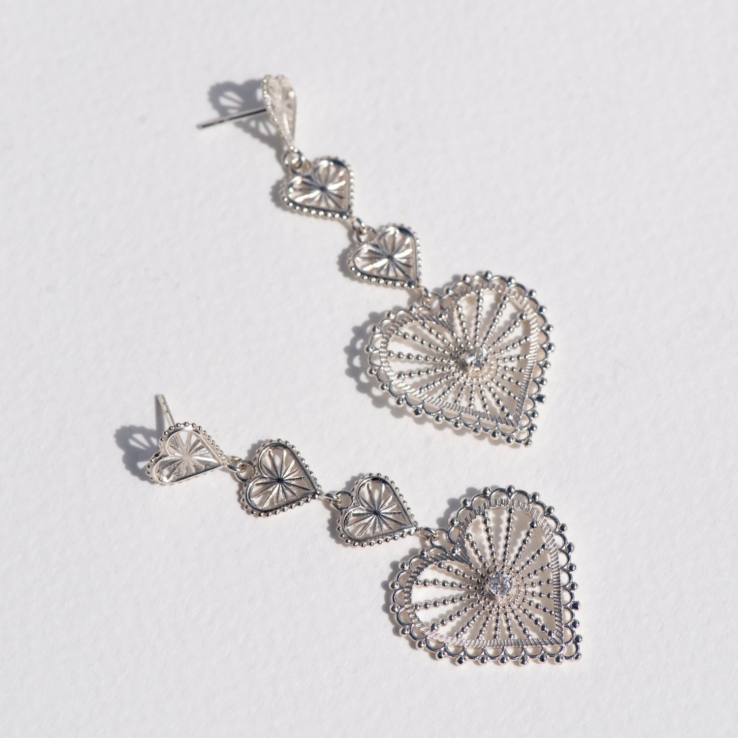 Mi Amor Earrings Silver White Zircon