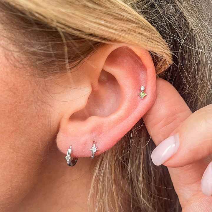 Diamond North Star Seamless Huggie Hoop Earring 9K White Gold